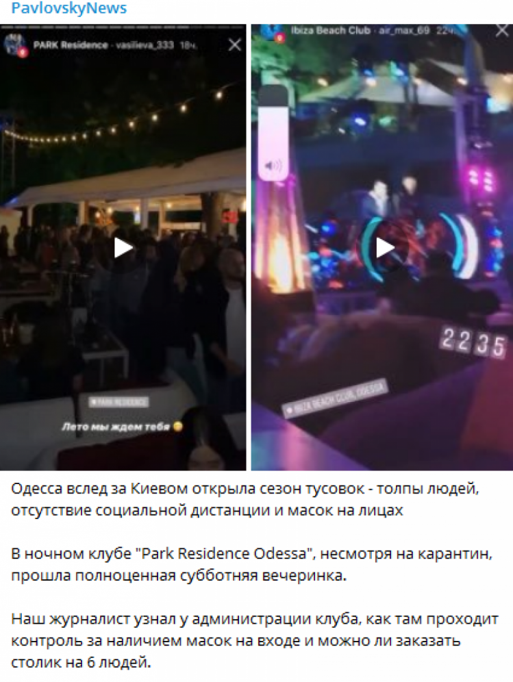 "У нічному клубі "Park Residence Odessa", незважаючи на карантин, пройшла повноцінна суботня вечірка", – написав він.